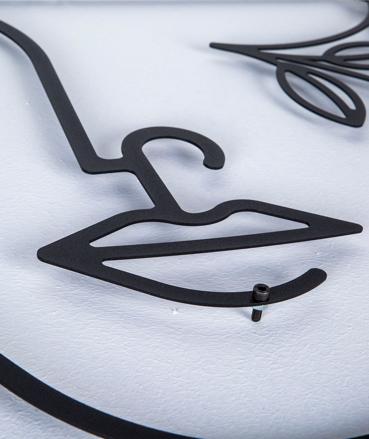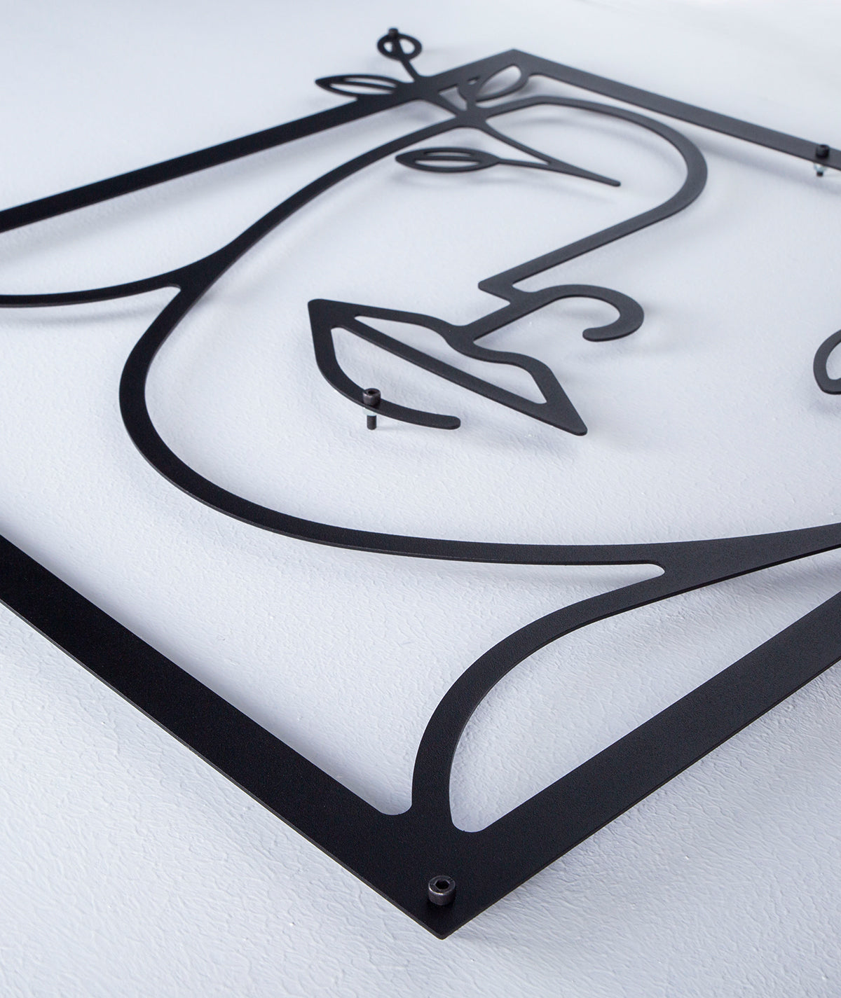 Black Line Art Metal Wall Decor – Elegant Female Silhouette with Flowers